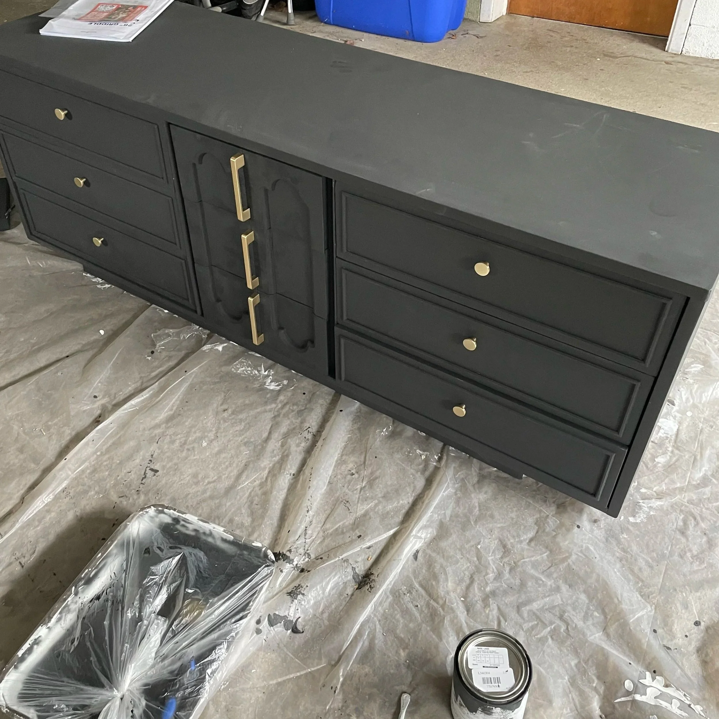 Found this gem on Facebook marketplace. Matt helped me sand it down, paint it matte black and replace the hardware. We put it in Jackson’s room when we took his for Mila lol.